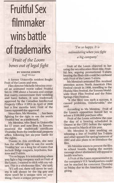 Opposition Hearing CIPO Fruit of the Loom vs. Michelle Messina Re: Fruitful Sex Trademark March 30, 2006